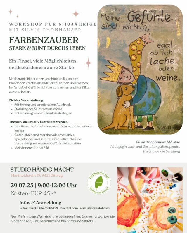 Die Künstlerstubn kann auch zusammen mit einem Workshop im Studio håndg’måcht gebucht werden. Schau dir unbedingt die Kurspläne für dieses Jahr an.