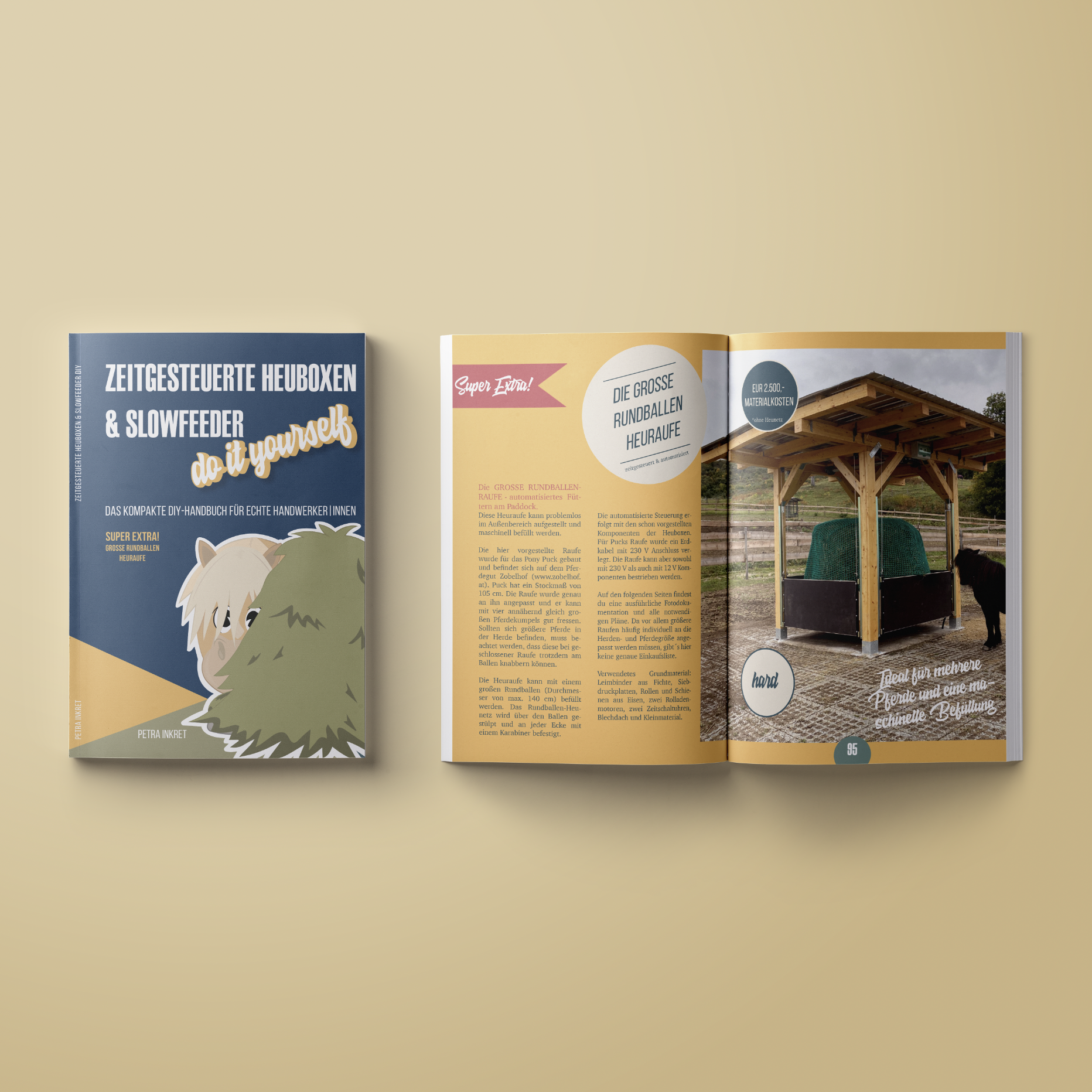 Du möchtest dir gerne eine zeitgesteuerte Heubox oder einen Slowfeeder selber bauen? Du weißt aber nicht wie das geht? Dann bist du hier genau richtig! Auf 116 farbigen Seiten findest du tolle Anleitungen zum Bau deiner eigenen Heubox.